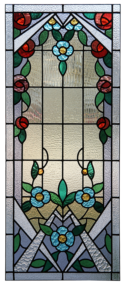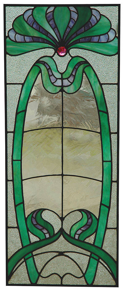 Jugendstil Verglasung mit rotem Glas-Carbochon